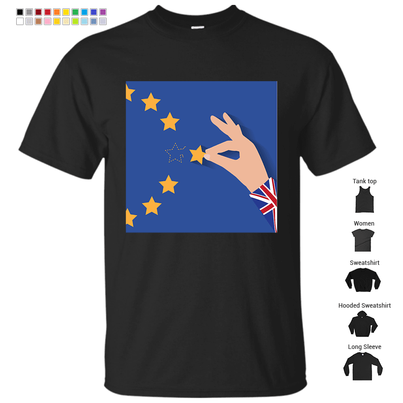 Brexit Uk hand removing star from Eu flag leaving just stitches behind T-Shirt
