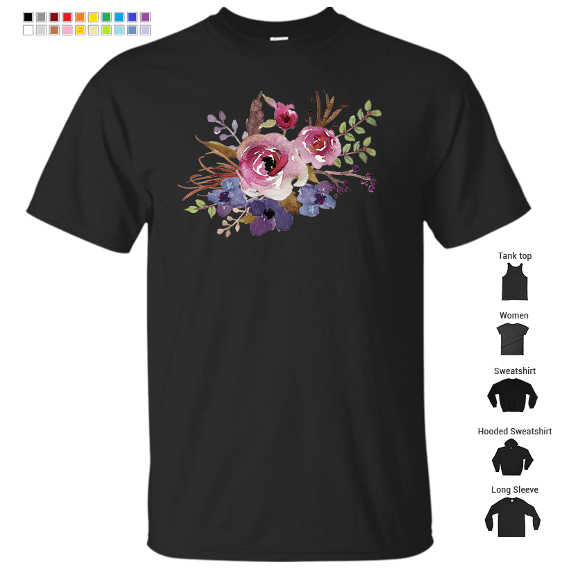 Burgundy Blue Watercolor Flower Bouquet T-Shirt
