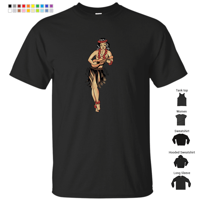 Jerry’s Traditional Aloha Hula Girls In Hawaii Pattern In Aqua T-Shirt